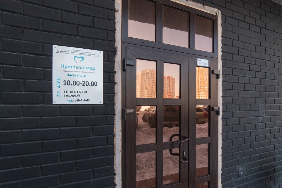 Стоматологическая клиника Кристалл-мед - это учреждение широкого профиля, предлагающее специально подобранный комплекс процедур для каждого клиента. В работе клиники все построено с учетом максимального комфорта для посетителей. Оборудование кабинетов позволяет провести диагностические исследования организма пациента для составления программы лечения и профилактических мероприятий. Наши работники имеют профильное медицинское образование и с пониманием отнесутся к вашим проблемам. Доверяя свое лечение нам, вы можете быть уверены в результате.