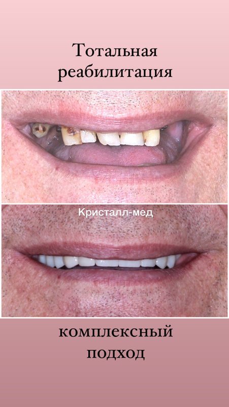 В клинике Кристалл Мед мне провели тотальную реставрацию, которая восстановила прикус, изменила форму и цвет. Терапевтически устранили клиновидные дефекты у зубов нижней челюсти. Высокопрофессинальная работа ортопеда Максима Витальевича это что то! В результе моя улыбка стала полноценной, улучшилась мимика лица. В клинике под руководством Дмитрия Александровича Карпова всё для пациента: высокопрофессиональная, качественная работа, доброжелательность персонала, комфорт, бонусная программа. Рекомендую за "голливудской" улыбкой в Кристалл- мед!